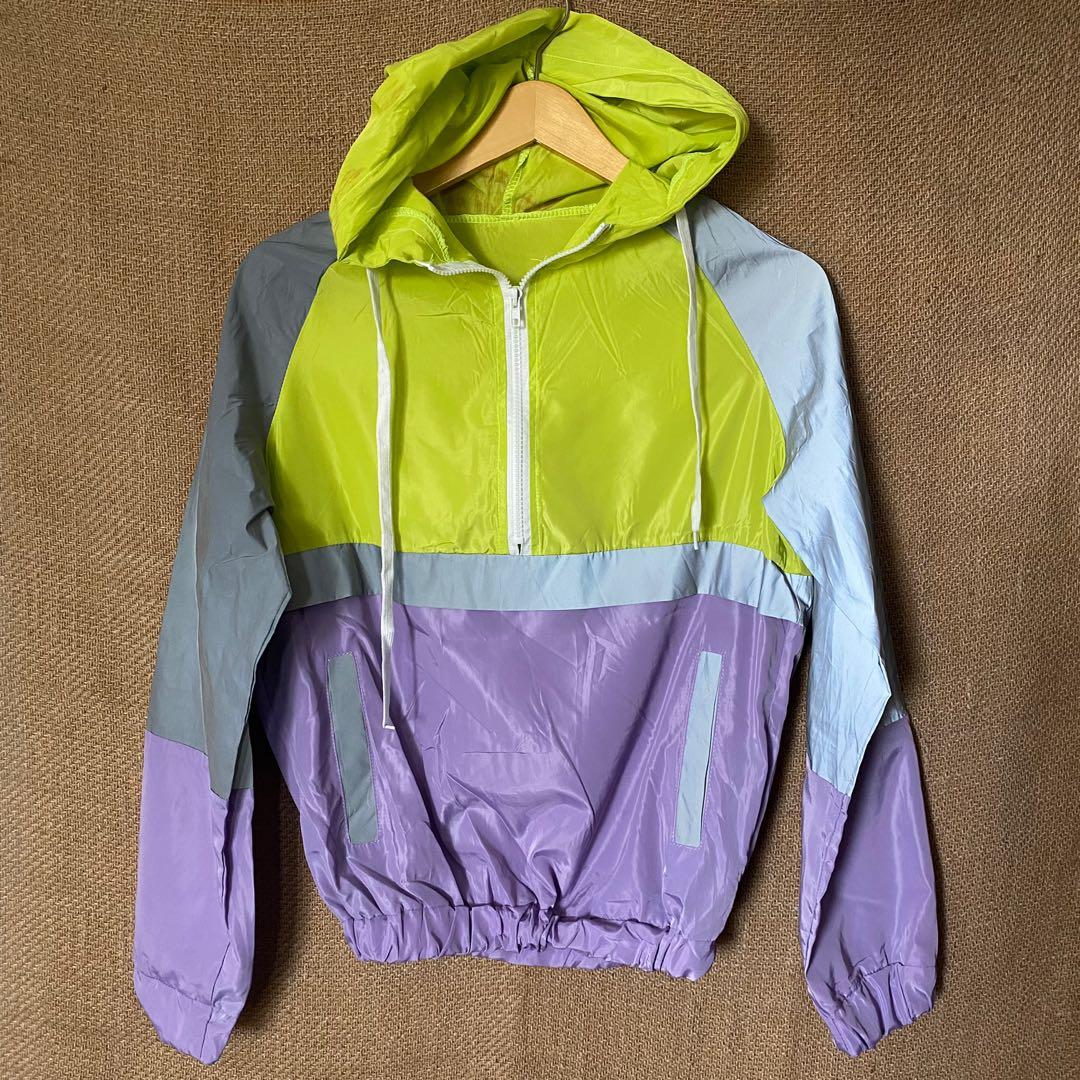 Web Womens Oversized Color Block Woven Hooded Jacket. Web Vintage 1990s Casual Isle Color Block Windbreaker 90s Abstract Art Pattern Outerwear Jacket Streetwear Vibrant Jacket.